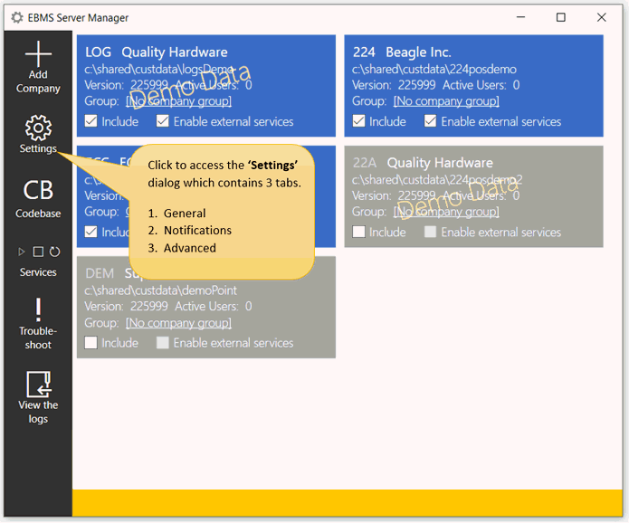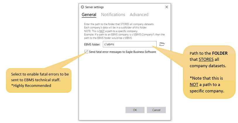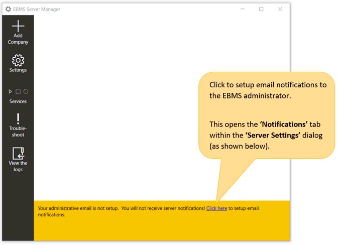 EBMS Server Manager must have settings configured properly to access company data through the EBMS software.
