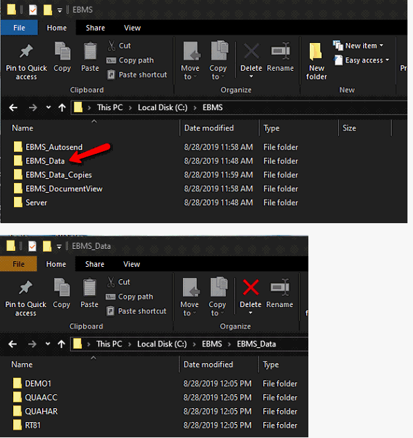 To begin accessing data, one or more company datasets needs to be stored in the 'Root EBMS folder.' (Refer to step one for the root EBMS folder location.)