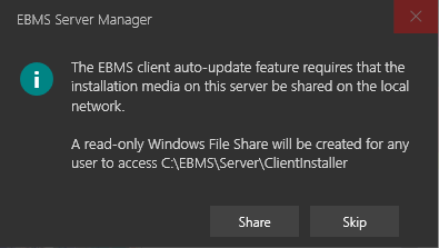 Note that the EBMS installation process will set permissions for some of the installation paths to facilitate the client install.