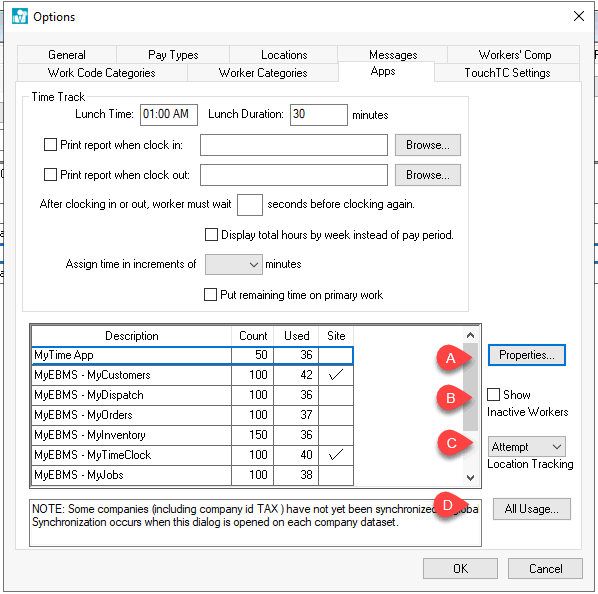 Click All Usage to view the current app licenses. Note that non-license users (concurrent EBMS users) will only show if the app is active.