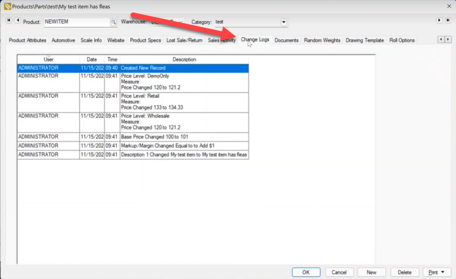 The purpose of change logging is to record with a record within EBMS has changed or been created. Some documents within EBMS include an entry date to record when the document was created. Many documents do not have the capability to record each change without the change login feature. EBMS has offered a custom programming script prior to EBMS version 8.5 but now this feature is included in enterprise versions of the software.