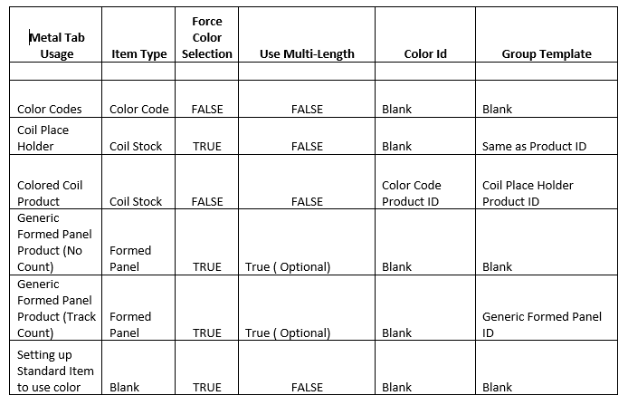 Review Setup Advanced Metal Tools for instructions to configure metal inventory products including components and color selection.