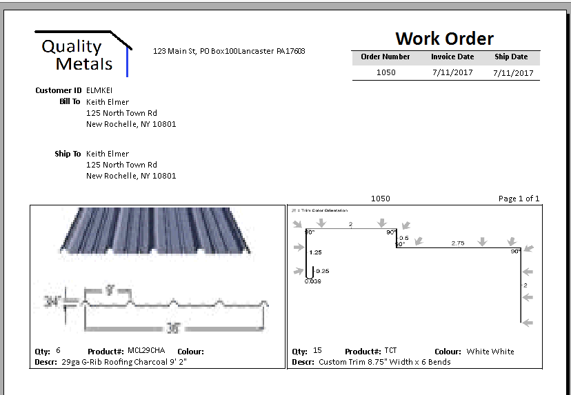 Integration between quoting, sales, design, manufacturing, and accounting within a metal supply center can save lots of time and increase accuracy. The sales tools allows the user to record individual orders with custom length metal panels, stock & custom trim, metal packages, and more.