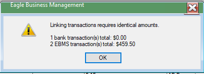 Do not use the Skip button unless a bank transaction must be removed. The user should link all Bank Feed transactions to verify that all EBMS transactions exist and match the bank.